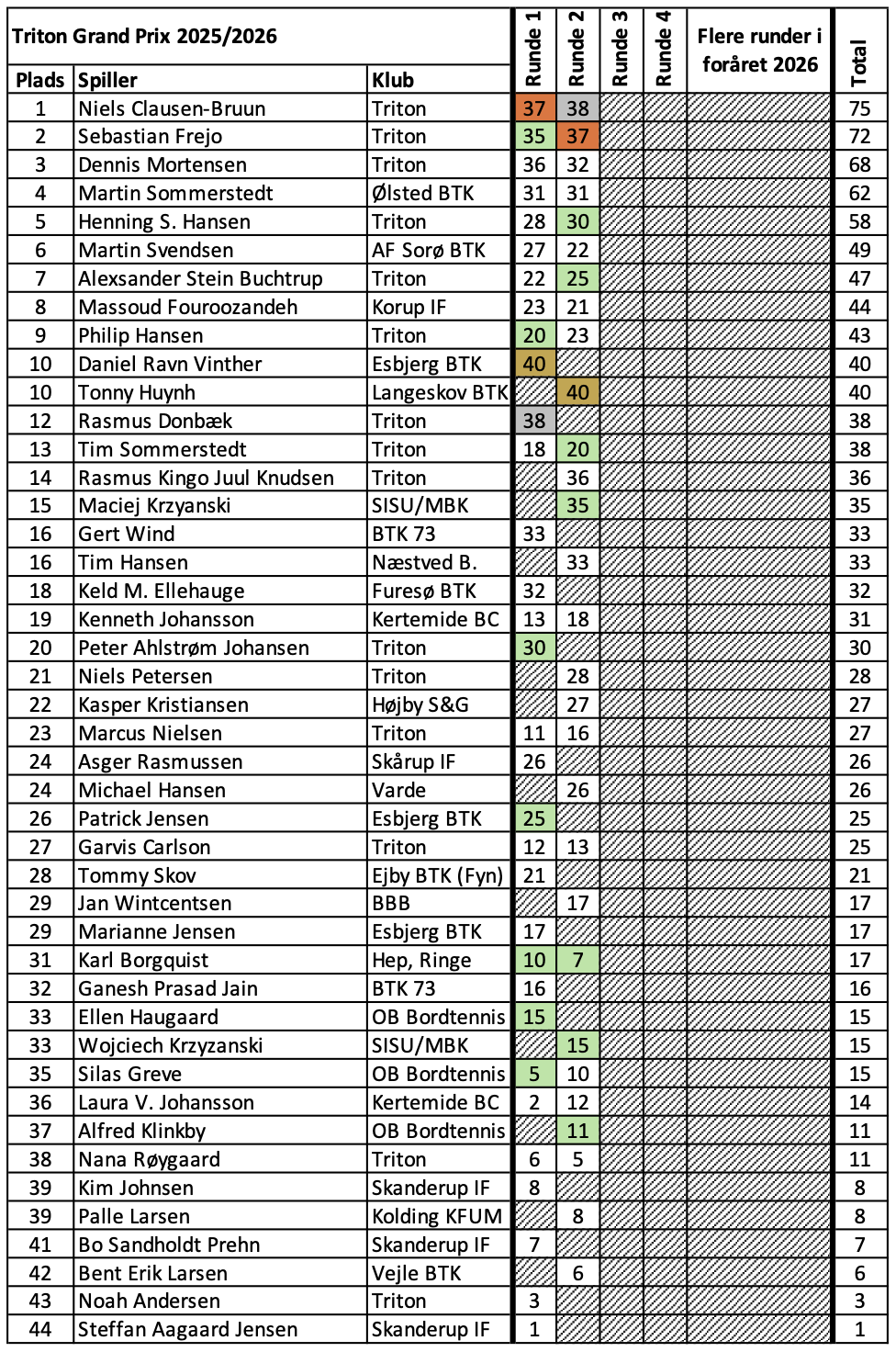Ved pointlighed rangeres den spiller højest, der har haft den bedste placering i runderne.
